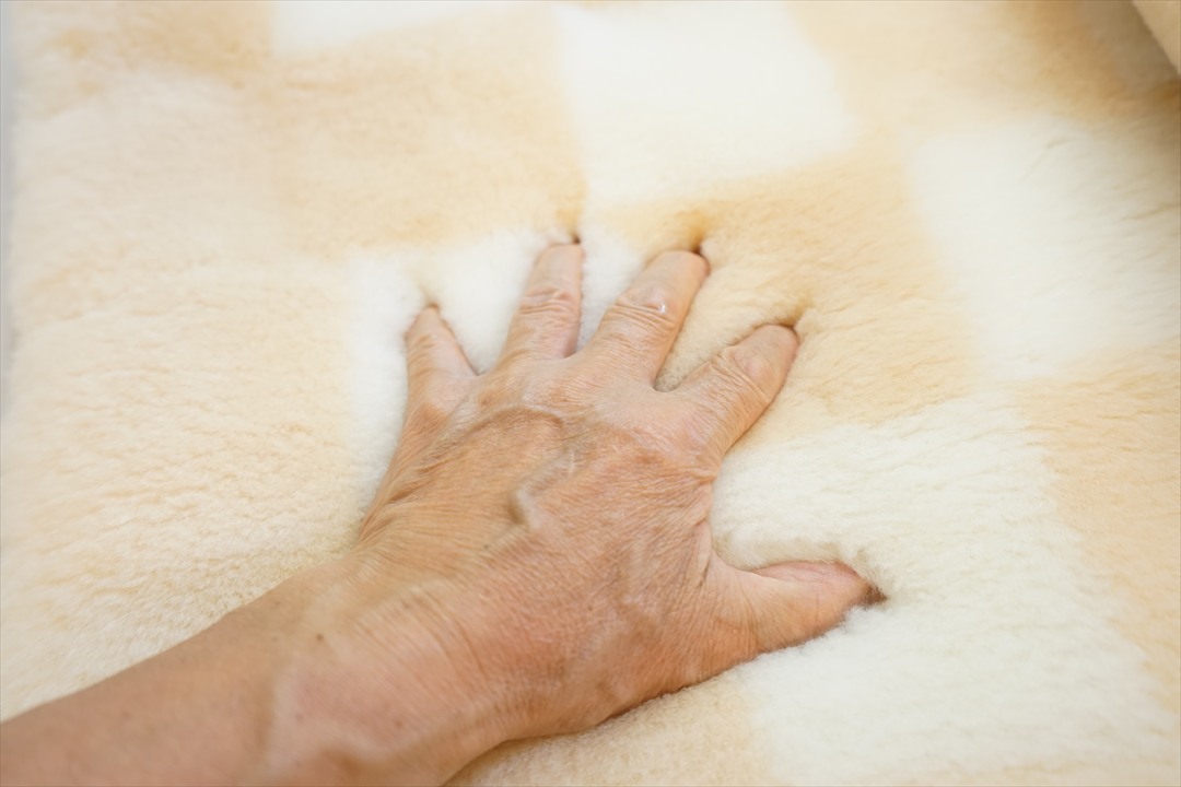 ・高品質の市松柄 オリジナル ムートンシーツ毛長35mm