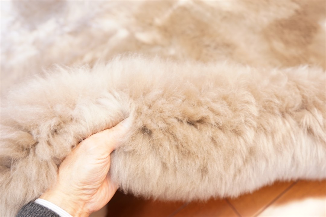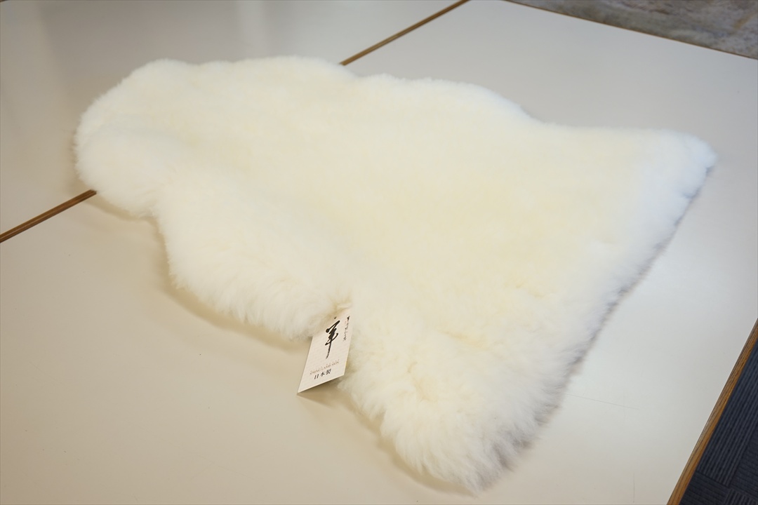 お部屋のベッドの横にムートンのラグマットを敷きたいとご来店されました。120x200cmのサイズをご希望で、ラグマットで作られると、金額が¥226,800.-となりますので、ムートンのフリース4匹物では?と、フリース4匹物のサイズは約100x180cmですが、お部屋に敷かれるとムートンの曲線ラインがナチュラルで良いですよ!とお薦めをしました。